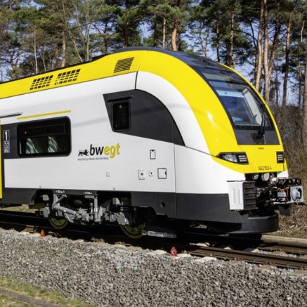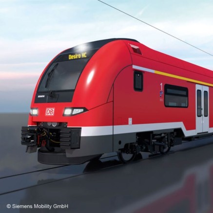 ...zieht einen Ganzzug aus ebenfalls neuen Schwenkdachwagen