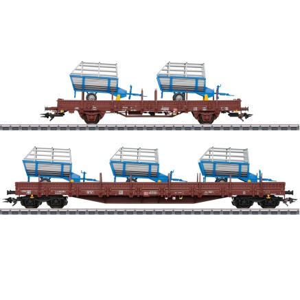 Dieses Wagenset wird exklusiv für mhi-Händler angeboten. Die Wagen der Typen Res und Ks (DB AG, Ep.VI) sind mit unterschiedlichen landwirtschaftlichen Geräten beladen.